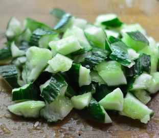 4. 腌制:将切好的黄瓜片放入容器中,加入适量的盐、辣椒粉、蒜末等调料,搅拌均匀。